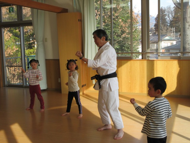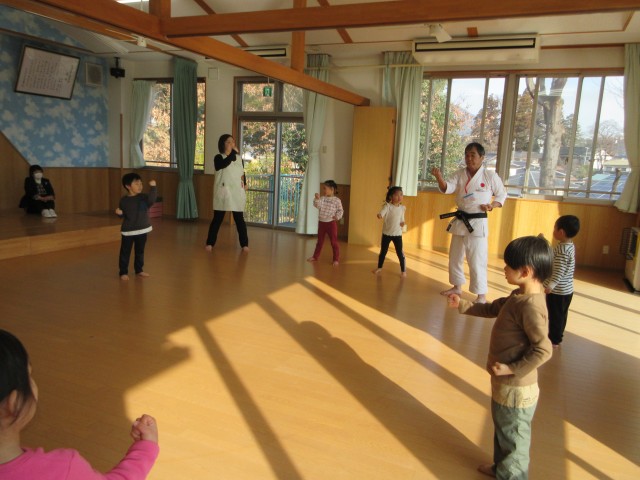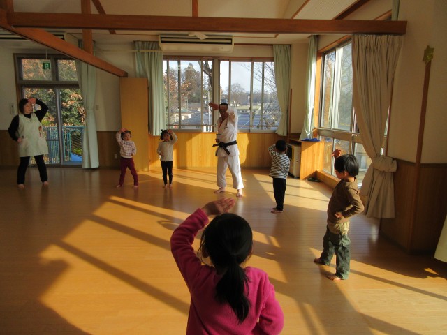今年度は体力づくり、集中力、我慢する力、あいさつや礼儀を育てることを目的に、初めて【空手教室】を行事に取り入れ、年中と年長の子どもたちが年間を通して空手を体験してきました。